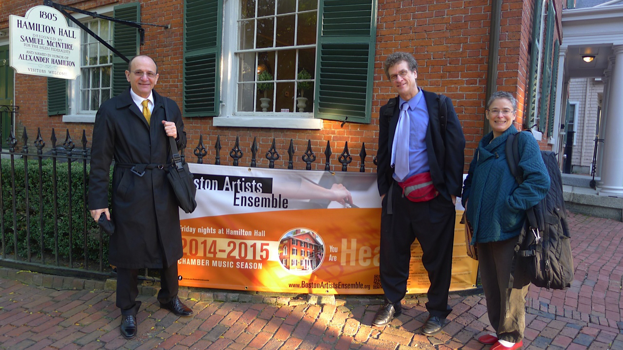 The Boston Artists Ensemble kicked off its 2014-15 season in its new Salem venue — historic Hamilton Hall on Chestnut Street. BAE musicians Sharan Leventhal, Jonathan Miller, and Randall Hodgkinson performed piano trios of Haydn, Dvorak, and Shostakovich to a full and enthusiastic house.